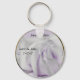 A beautiful spiral rose tinged with pale lavender purple violet makes an enchanting wedding flower announcement. Give a save the date wedding keychain as a stunning fun reminder and gift. Design includes a pale lavendar background and a silver and gold ring around the image.
