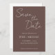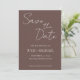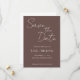 Mariage de style simple enregistrer les invitations à jour qui comportent un script blanc et stylisé sur un arrière - plan de couleur taupe tendance. Modifiez et remplacez les noms, la date et l'emplacement par les vôtres. Sélectionnez votre taille d'invitation et votre style de papier.