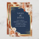 Save The Date Terracotta Floral Navy Blue QR Code Photo Mariage