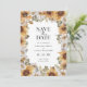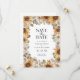 Tournesol Sauvez La Date. Ajoutez un peu de soleil à votre mariage avec ces magnifiques tournesols jaunes aquarelles peints à la main, des marguerites blanches et des feuilles verts sauge et couleur terre cuite. Idéal pour un mariage romantique d'automne rustique ou un mariage d'été en plein air dans un jardin, ces incroyables annonces de mariage boho chic sauveront le ton de votre journée spéciale. Trouvez des produits de coordination dans Rustic Watercolor Sunflower Wedding Invitations.