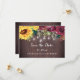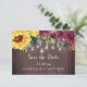 Ceux-ci sauvegardent les cartes datées disposent d'un design aquarelle avec des tournesols et des fleurs bordeaux sur un arrière - plan à grains de bois avec des lumières à cordes de jarre de mason. Personnalisez ces cartes avec votre propre texte. Ces cartes font partie d'une collection qui comprend d'autres éléments mariages. Veuillez consulter la page de collection ou visiter notre magasin pour voir la gamme complète.