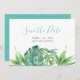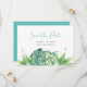 Annoncez vos fiançailles avec mes invitations de sauvegarde de date chic et bohème tropicales, avec "Save the Date" dans un style de typographie script tendance qui évoque l'aspect de lettrage manuscrit. Cette carte simple présente une réplique de mon aquarelle peinte à la main originale avec des feuilles de palmier vert et de monstera avec vos noms, date de mariage et lieu de mariage. Le verso des cartes est d'une couleur turquoise uni complémentaire. Parfait pour les petits mariages sur la plage dans les Florida Keys, Key West, Hawaï ou tout autre endroit tropical. Pour voir plus d'invitations de mariage mignonnes par Victoria (Rigali) Grigaliunas, visitez DoTellABelle sur Zazzle.