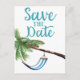 Save The Date Tropical Paradise - Featuring a vintage striped hammock hung on a large palm tree wedding/Engagement or general celebration poster art.