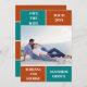 Mariage turquoise bleu et rouille bloc couleur Enregistrer la carte Date. Le dos comprend un motif avec de larges bandes en bleu turquoise et rouille.