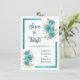 Cette belle carte Save the Date présente un bouquet de roses turquoises et turquoise avec des feuilles or sur un arrière - plan blanc classique.