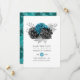Carte de mariage à personnaliser avec fleurs scintillantes turquoise (sarcelle), noires et argentées, pour annoncer la date de votre événement.
