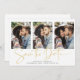 Écrit à la main Enregistrer la date Gold Multiple Carte photo dans une police qui est élégant et évoque une sensation manuscrite romantique. Conçu pour utiliser trois de vos photos préférées pour une personnalisation supplémentaire. Ajoutez facilement vos noms et dates pour un design vraiment personnalisé. Veuillez nous contacter à cedarandstring@gmail.com si vous avez besoin d'aide pour la conception ou les produits correspondants.