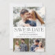 Annoncez votre date mariage dans le style avec notre photo moderne enregistrer les cartes de date. L'avant de la conception comprend trois de vos photos fiançailles avec "Save the Date" affiché en noir de polices de serif et de script modernes. Personnalisez l'avant de la photo multi enregistrer la carte de date en ajoutant vos noms, la date mariage et l'emplacement du mariage. L'élégant enregistrer la carte de date inverse pour afficher un motif de treillis noir et blanc.