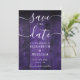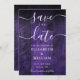 Cet élégant violet rustique grange bois boho mariage enregistrer-le-jour carte peut être personnalisée avec vos informations dans la typographie chic. Conçu par Thisisnotme©