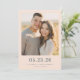 This wedding save the date features a warm, intimate photograph of two individuals with softly blurred backgrounds, creating a serene and affectionate atmosphere. The design uses a harmonious color palette of soft beige and light brown tones, complemented by subtle hints of green, enhancing its inviting feel. Clean, sans-serif typography is used for customizable details, ensuring clarity and elegance. The overall layout is centered and vertically oriented, emphasizing simplicity and emotional resonance, making it perfect for celebrating personal milestones like weddings or engagements.