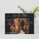Dark and elegant Save the Date Wedding Invitation. This is an elegant Save the Date invitation. Simple but stunning with a bride and groom in a beautiful wedding setting.