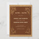 Announce your big day in true western style with this rustic Save the Date, designed to complement your tooled-leather wedding invitation suite. The front features a warm terracotta background with a subtle faux leather texture and soft cream lettering—simple, elegant, and perfectly suited for country, barn, and ranch weddings.