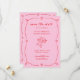 These elegant and whimsical wedding save the date cards feature a whimsical, wavy frame with hearts, and a hand-drawn cupid cherub with bow and arrow. Romantic, vintage script and classic serif text help create a stylish and retro layout. The back of the card features your favorite personal photo, plus a scannable QR code so guests can get more information or RSVP. This trendy, vibrant pink and red invitation is a colorful way to let friends and family know you are getting married.