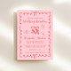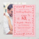 Trendy retro-inspired pink and red wedding reception save the date featuring a wavy frame adorned with coquette bows, whimsical hand drawn illustrations of a heart, stars and wine glasses, and "Wedding Reception" and the names of the bride and groom in a fun, playful script. Your photo fills the back of the announcement.