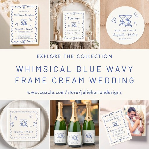 Whimsical Blue Wavy Frame Cream Wedding ReceptionConçu par Julie Horton