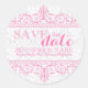 Save The Date White Damasks & Pink lace Classic Round Sticker