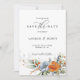 This stunning Save the date features a beautiful floral motif in shades of blue and orange, creating a perfect harmony of colours that will impress your guests. This makes it an excellent choice for couples who want to add a touch of colour to their save the date and make it truly unique.