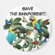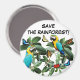 A beautiful rubber tree plant adorns this magnet urging all to save the rainforest