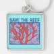 Vivid blue and orange design from an original prismacolor marker drawing by Angela Hoard-Dunn. This keychain shows a cheerful reef scene that is colourful and whimsical. Lots of happy blue fish surround a bright orange coral and the message is "Save the Reef."