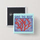 Vivid blue and orange design from an original prismacolor marker drawing by Angela Hoard-Dunn. This button shows a cheerful reef scene that is colourful and whimsical. Lots of happy blue fish surround a bright orange coral and the message is "Save the Reef."