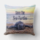 Save The Sea Turtles, cute little baby sea turtle in the sandy beach with the waves behind.