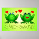 24" x 16" poster, green cartoon frogs Twitchy and Beulah with red hearts. You can get this poster in larger or smaller sizes if desired, or on different types of paper. Wetlands such as swamps, bogs, marshes and fens are vital to a healthy enviroment. A portion of proceeds from every "Save the Swamp!" product goes toward enviromental education and wetland conservation. Please visit http://www.happywishingwell.com/save-the-swamp.html for more info, and have a hoppy day!