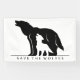 This is a black and white design of a howling wolf with her wolf pup. Many species of wolf (including the Grey Wolf) are still endangered. Text reads "Save the Wolves." This design can be personalized by adding your own text or images.