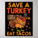 Save Turkey Eat Tacos Mexican Fun Thanksgiving Foo Poster