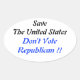 Save The United States, Don't Vote Republican. Oval Sticker