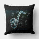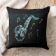 modern blue and black free style drawing in white of a saxophone with music notes. musical instrument in black and blues.