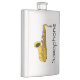 The product is a good size and came exactly as it was pictured. The lid is not attached to the flask, which could be dangerous on drunken nights... The print came out surprisingly well and looks very sharp. Would definitely recommend.