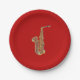 Design with illustration of saxophone on red background; elegant simple jazz musical instrument design
