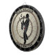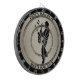 Sax player belts out notes on this dart board with space for personalized text.