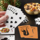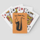 Saxophone playing cards with custom name. Personalized Birthday or thank you gift idea for saxophonist, sax player, music teacher, friend, musician, jazz fan, dad, uncle, marching band etc. Add your own name, club name, blue cafe, pub, restaurant, group, artist, band name, monogram etc. Also nice as Christmas present or party favour. Instrument silhouette with music notes.