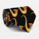 Impressive tie with a repeated coloured pencil saxophone motif on a black background