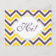 Send a message to tell them Hi with one of our custom postcards. Adorned with a fun and classic purple and yellow zig zag design with hand scripted letters the word Hi! on the front. Customize the back with your address. View our full selection of greeting cards in our Zazzle store!