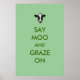 Say Moo and Graze On Funny Cow Joke Poster Print. A funny cow joke poster with a dairy cow head and fully customizable text slogan "Say Moo and Graze On". This great funny cow poster print is fully customizable, add your texts and images! A great cow gift for the big cow fans!