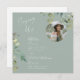 Saying Yes Sage Bride Photo Bridal Shower invitation. White typography. . Simple Script. Contact designer for changes to this design (colour, parents, number of venues). Your picture does not need to be round.
