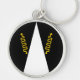 "Sable, a pile inverted throughout argent between two lightning bolts in chevron inverted or."