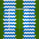 "Per pale wavy barry wavy argent and azure and vert." Allover pattern of the populace badge for the Barony of Aquaterra in the Society for Creative Anachronism.