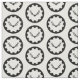 "Argent, a massacre within a bordure embattled sable." Allover pattern of the populace badge for the Barony of Buckland Cross in the Society for Creative Anachronism.