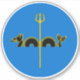 "Azure, a sea serpent ondoyant-emergent sable fimbriated and over all a trident or."