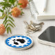 "Argent, in pale an oak leaf fesswise reversed embowed conjoined to an acorn sable, a border nebuly azure."