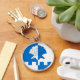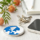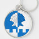 "Per pale azure and argent, an escallop inverted and a base embattled counterchanged."