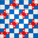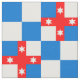 "Quarterly azure and argent, on a cross gules four mullets of six points argent." Allover pattern of the populace badge for the Kingdom of Lochac in the Society for Creative Anachronism.