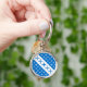 "Azure crusilly flory, on a bend argent five crosses flory azure."