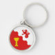“Per bend wavy argent and gules, a sea-wolf gules and a goblet or.”