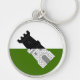 "Per fess argent and vert, a tower bendwise counterchanged sable and argent."