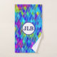Les écailles de dragon dans les tons de bijoux bleu, magenta, jaune et vert créent un joli et luxueux ensemble de serviettes.
