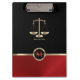 Clipboard - Scales of Justices sharp red and black with DIY monogram and name. 📌If you need further customization, please click the "Click to Customize further" or "Customize or Edit Design" button and use our design tool to resize, rotate, change text colour, add text and so much more. ⭐This Product is 100% Customizable. Graphics and / or text can be added, deleted, moved, resized, changed around, rotated, etc... ⭐99% of my designs in my store are done in layers. This makes it easy for you to resize and move the graphics and text around so that it will fit each product perfectly. 📌 (Please be sure to resize or move graphics if needed before ordering) You can also "TRANSFER DESIGN" on other Zazzle products and adjust the design to fit most of Zazzle items. (button is down on the right side of the page) This design is made with high resolution vector and/or digital graphics for a professional print. 📌NOTE: (THIS IS A PRINT. All Zazzle product designs are "prints" unless otherwise stated under "About This Product" on the left side of this page) The design will be printed "EXACTLY" like you see it on the screen and on the product...so please make sure when you do your changes on the resizing of any of the graphics or text that it fits in the areas correctly and that your spelling and wording is how you like it to be in size, colour and font. If you have any questions about the "DESIGN ONLY" or need help please contact me at ✉ siggyscott@comcast.net or visit my store link: https://www.zazzle.com/store/designsbydonnasiggy (Copy and Paste) I'll be happy to help. 📌 ALL OTHER QUESTIONS (shipping, refund, the printing, the product, etc...) please contact Zazzle or the Maker ⭐DIRECTLY⭐. Thank you for the support and stopping by my store - DesignsbyDonnaSiggy. © Donna Siegrist⭐⭐⭐ ZAZZLE promises 100% satisfaction. If you don't absolutely love it, Zazzle will take it back! ⭐⭐⭐ 1-888-8ZAZZLE (1-888-892-9953) Phone hours: Mon - Fri: 9AM - 5PM PT (12PM - 8PM ET)